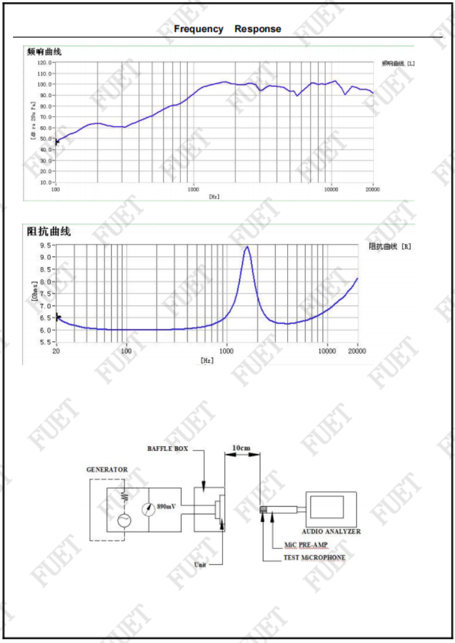 出力音壓 93.2±3dB At 0.1m1.0w f0~10.0KHz Average